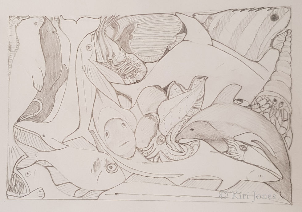 In an ideal world I would have hand painted the side panels in detail and extended the scene out. But I was running out of time and resources and decided that a Killer Whale and Great White Shark spray painted with stencils (cut from cardboard) would suffice and frame the artwork nicely too.